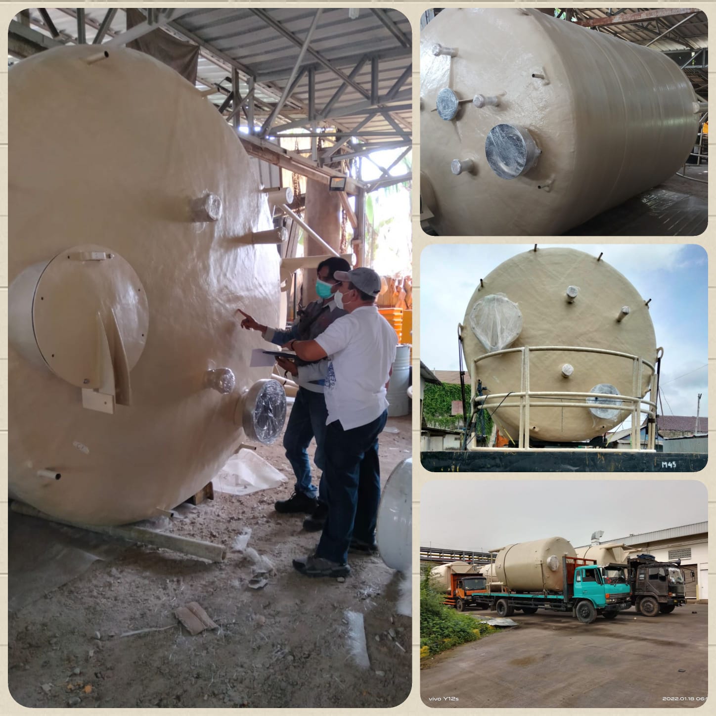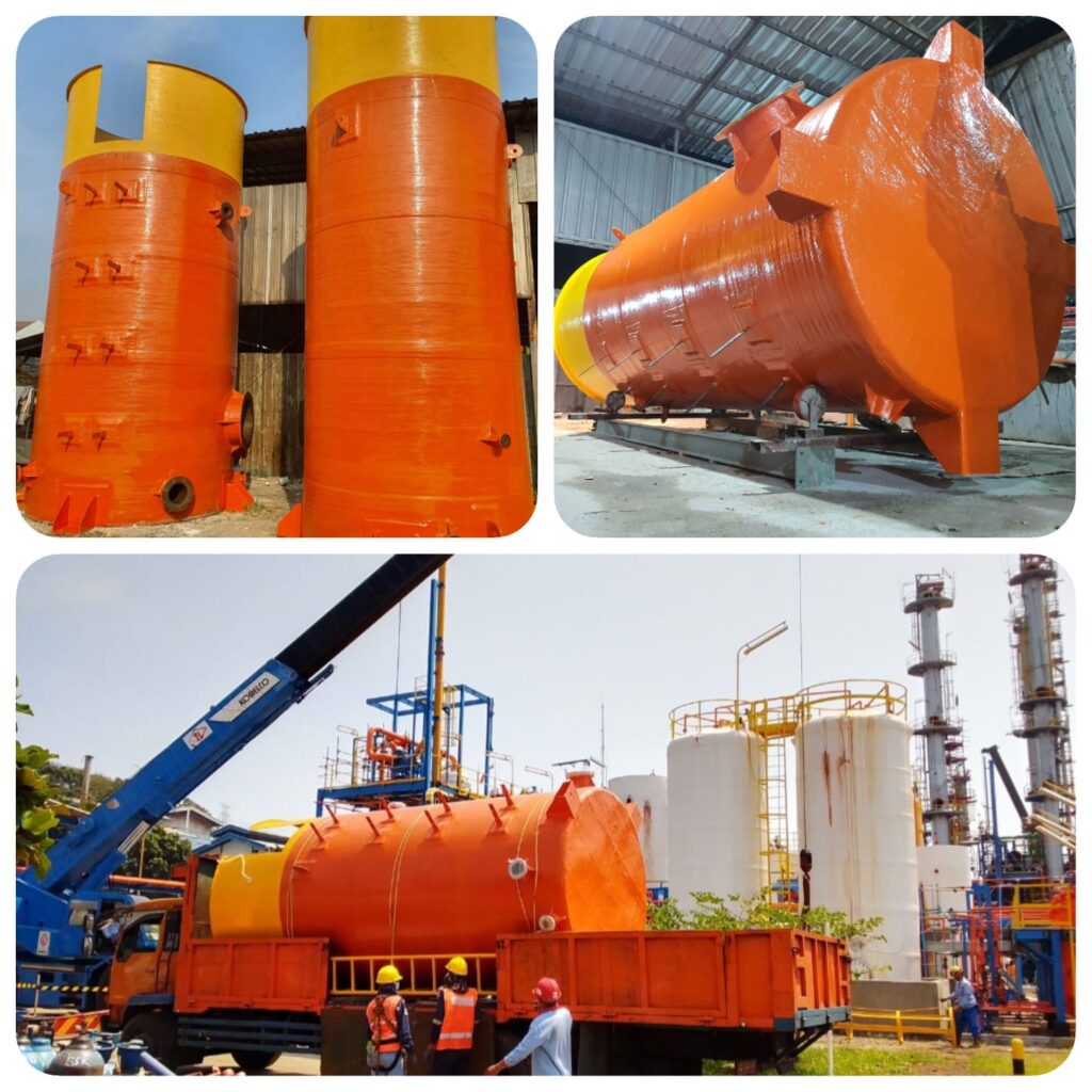 Tangki FRP, ducting, scrubber, canopy, dan berbagai produk fiberglass sesuai spesifikasi industri.